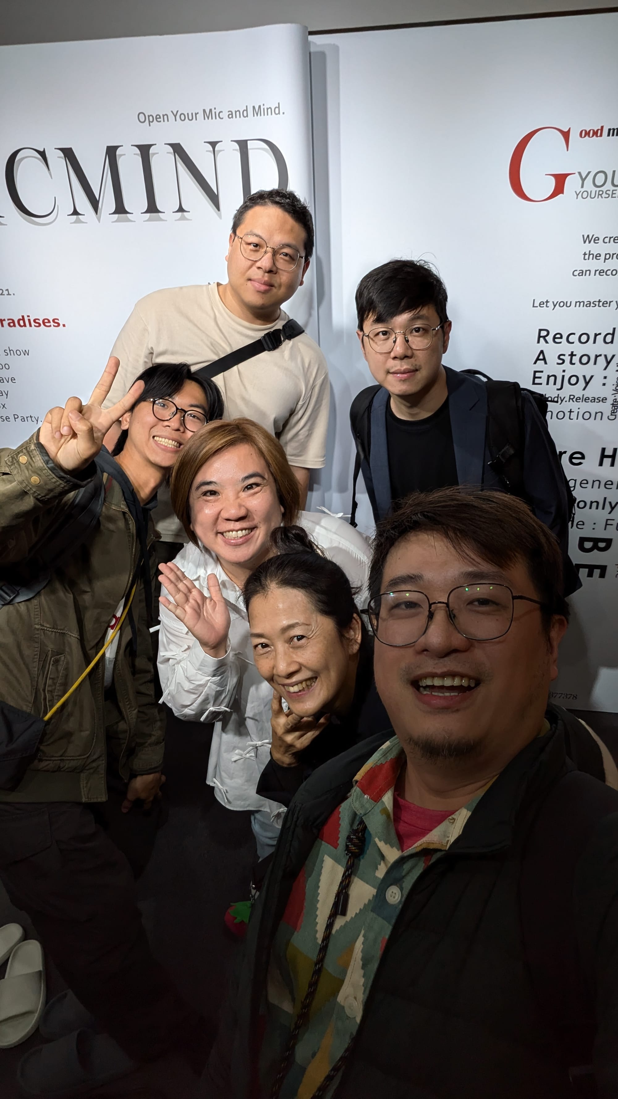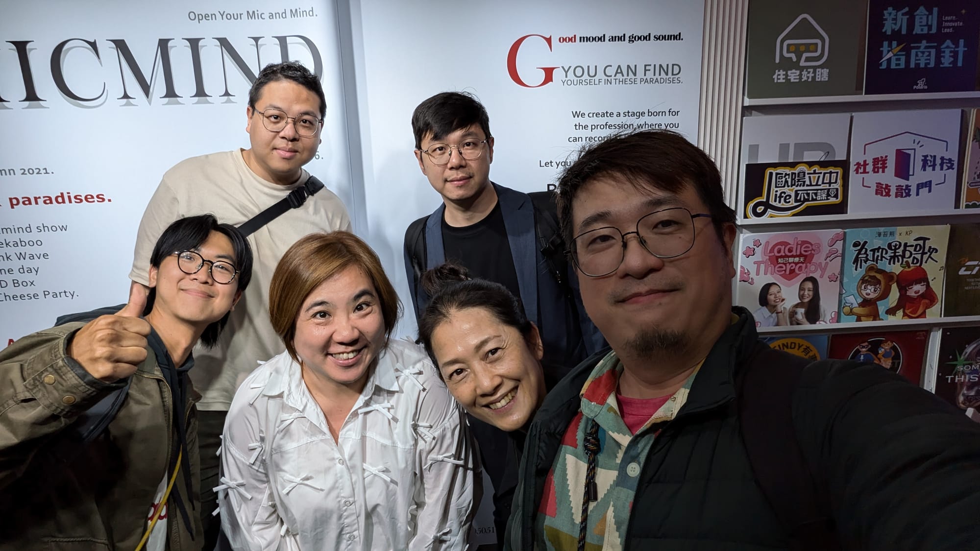 在MicMind錄音室前的大合照,感謝陪伴我們一整季的:汪賊、士玶、博儒、Dennis、Emeline、與Joey